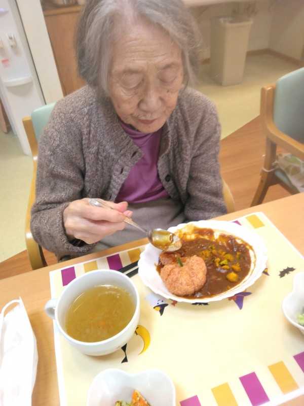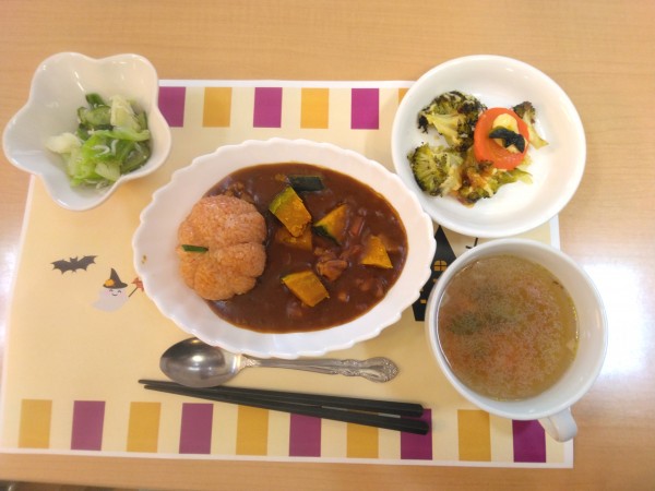 パンプキンカレーのライスはなんとかぼちゃの形(^^♪