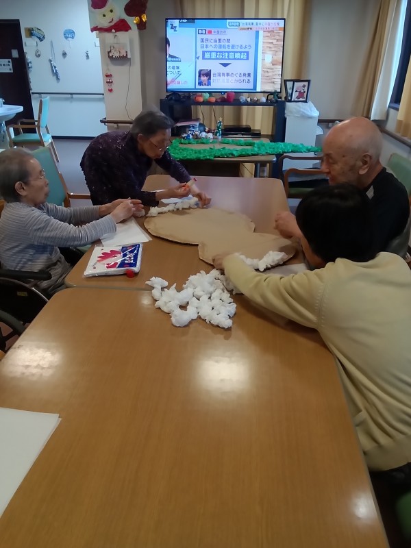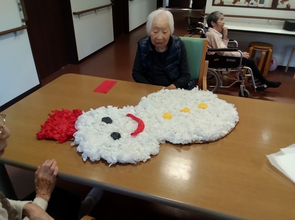 少し早いかもしれませんが、冬の代名詞とも言える作品を入居者様と一緒に制作しましたので紹介させていただきます