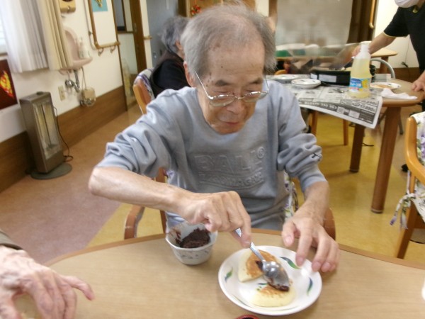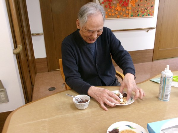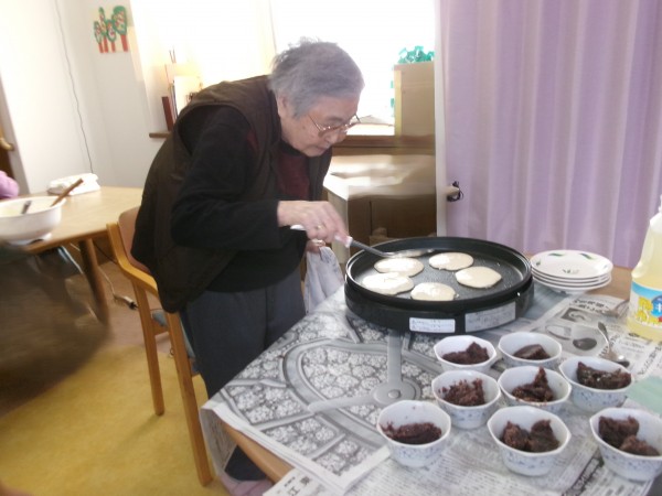 利用者様とスタッフで協力して、なんと!どら焼き作りに