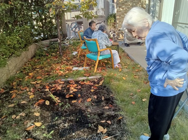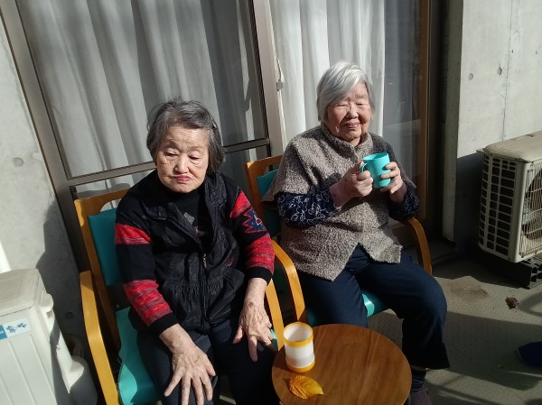 寒い日が続いていましたが、この日はとっても暖かく、お天気も最高に良かったので、ホームのお庭に出て、