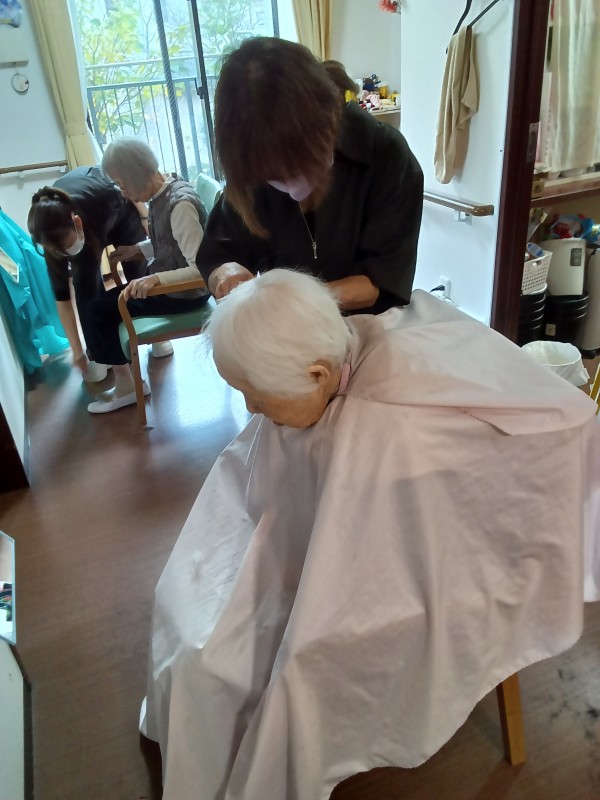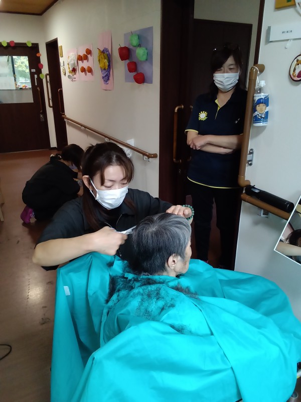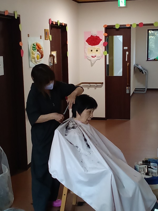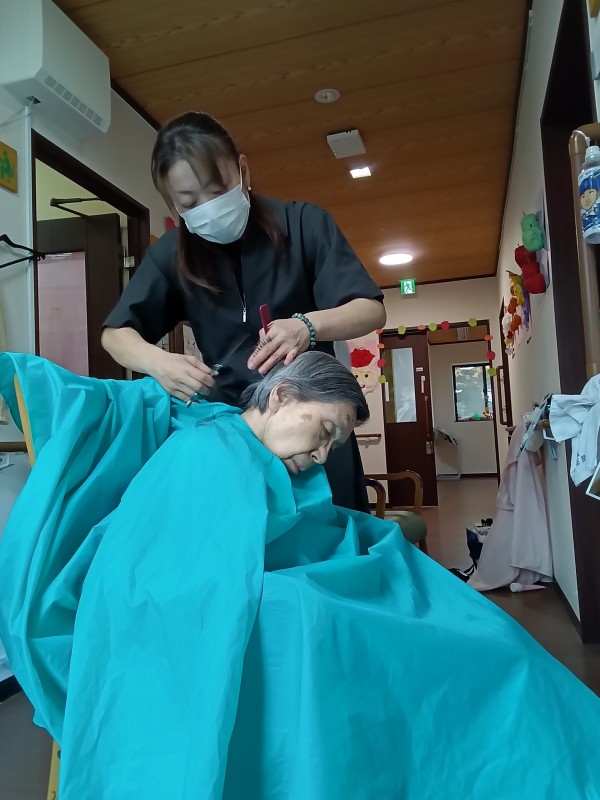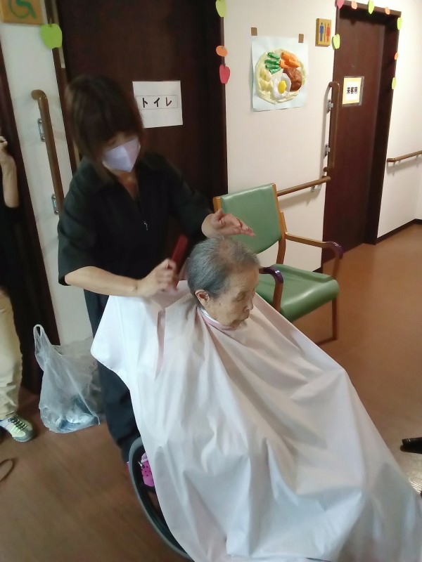 入居者様が毎回楽しみにされているので、スタッフもこの日のためにいつも以上に健康管理に気を使い入居者様は全員理美容を
