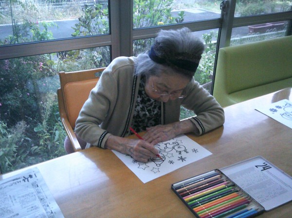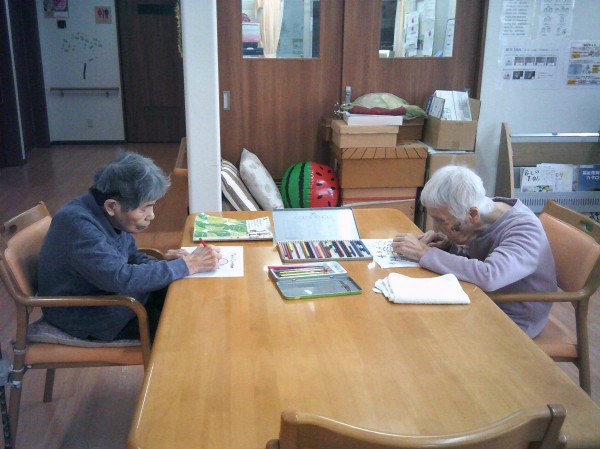 なかなか進まないね? 何色に塗ったらいいか分からなくなっちゃったわ(笑) お喋りされながら楽しそうに塗り絵を行っていました。