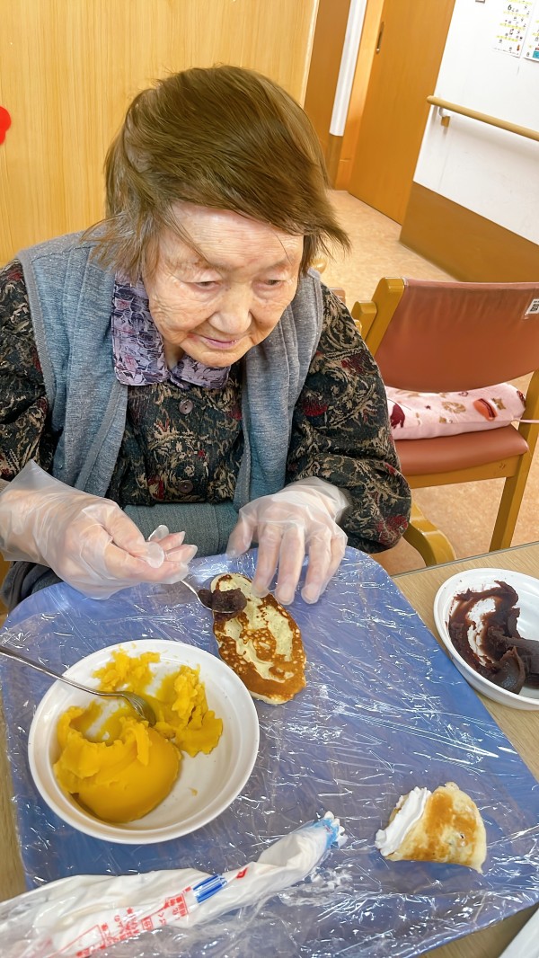 グループホームみんなの家大宮三橋 あんこたっぷりあんこ巻き♡2Fおやつレク