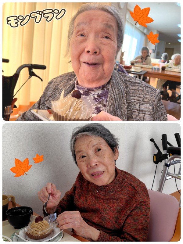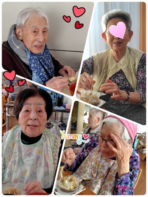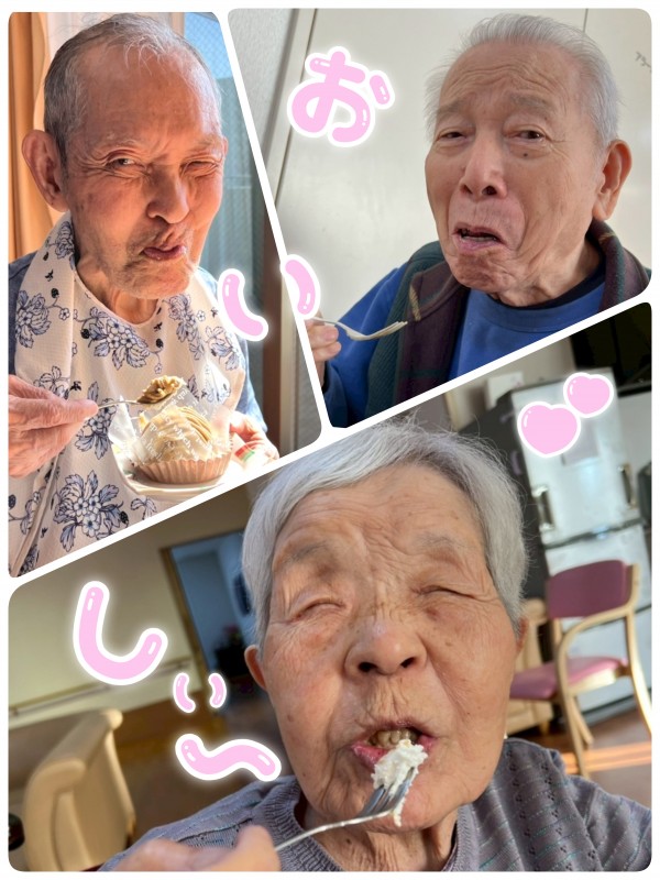モンブランケーキでほっこり笑顔。甘いものを食べると、気持ちもほっこり。