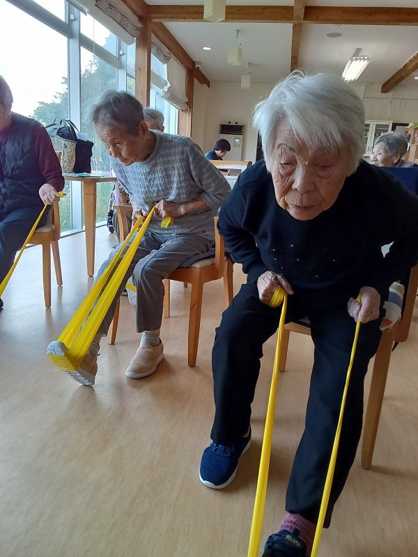 ゴム紐を使用して、筋力を