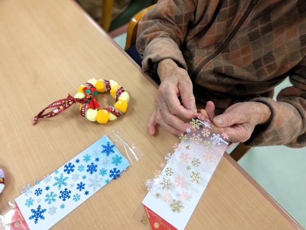 最後にパールや雪の結晶のキラキラシールでデコレーションして出来上がり☆