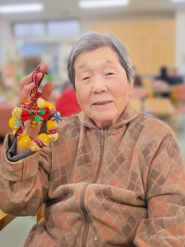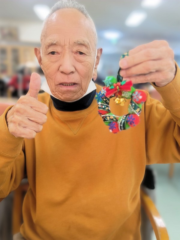 丸くして針金を止め、クリスマス柄のリボンをくるくる♪