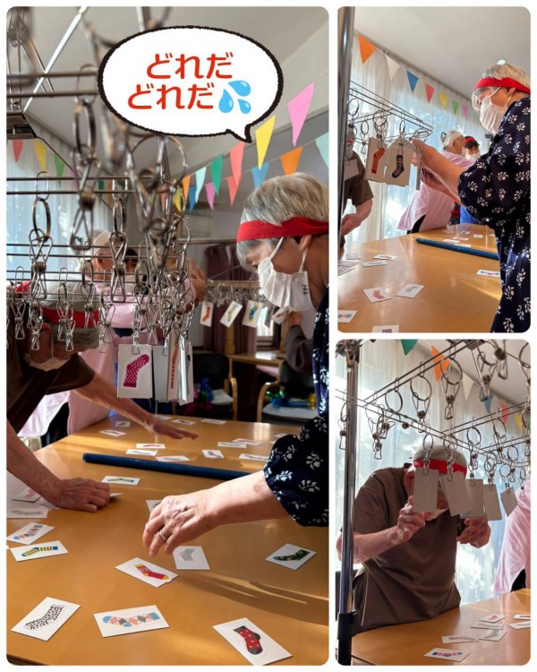 早く干し終えたチームの勝ち♬