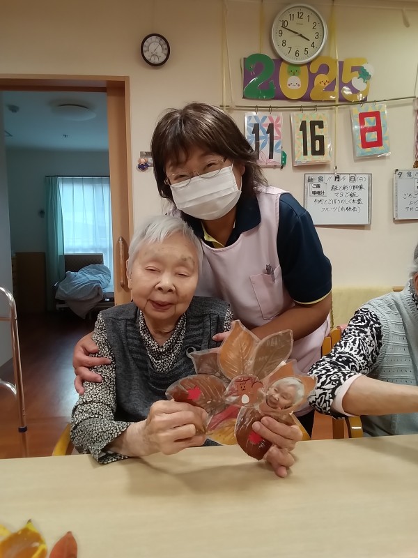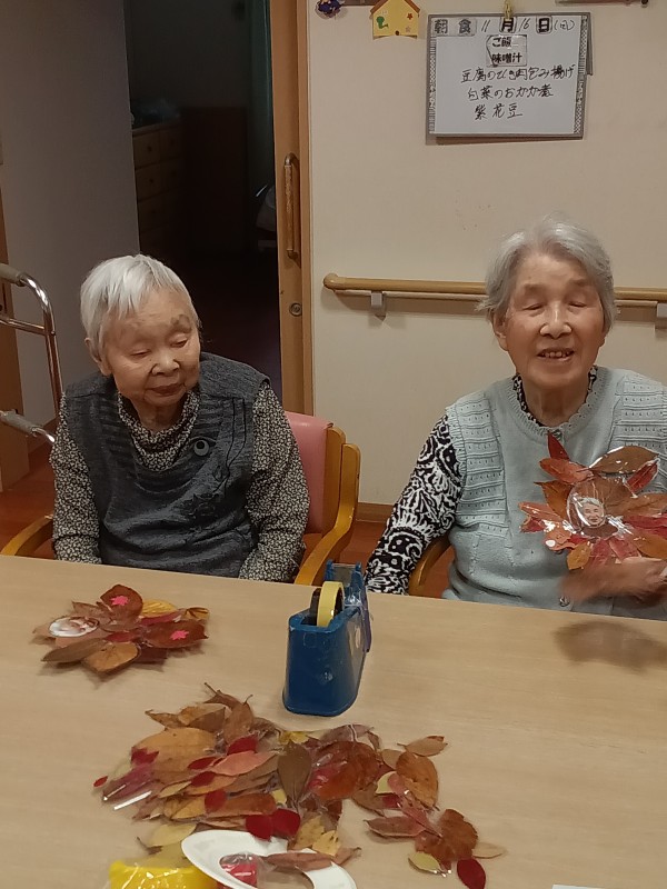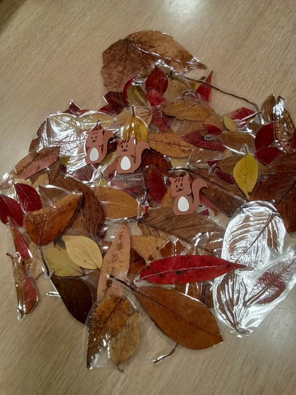 葉っぱを並べたり 円をかいてリースにしたり・・