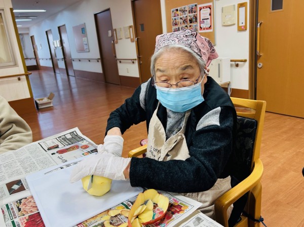 今月の料理レクは「りんご煮 ~ふんわりパンケーキにりんごのやさしい甘さを~」です