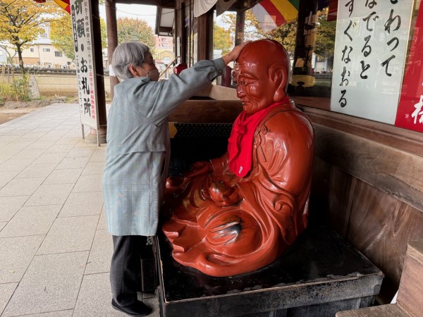 おびんずる様は、お釈迦様のお弟子様のひとりで、病気に苦しむ人々を救ったと伝えられている方です。そのため、昔から「自分の悪い部分と同じところを撫でると、良くなる」と信じられ、多くの参拝者に大切にされています。