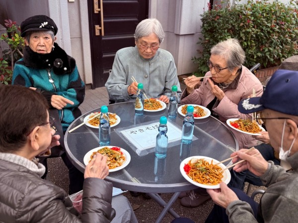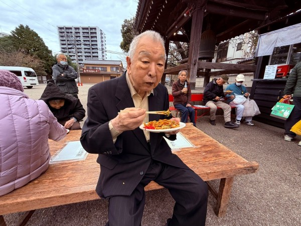 そしてちょうどその時、蓮馨寺名物“3時の鐘”が響き始めました。境内にゆっくりと広がる深く重みのある鐘の音を、焼きそばを味わいながら聴くという贅沢な時間。「いい音だねぇ」「今日は特別だね」と皆様も感動されていました。