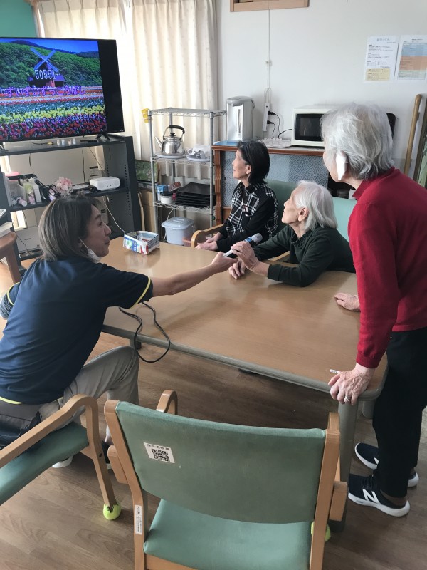 本日のレク時間にカラオケを楽しんじゃいました~!皆様、上手に歌います。好きな曲は歌詞を見なくっても歌えます!