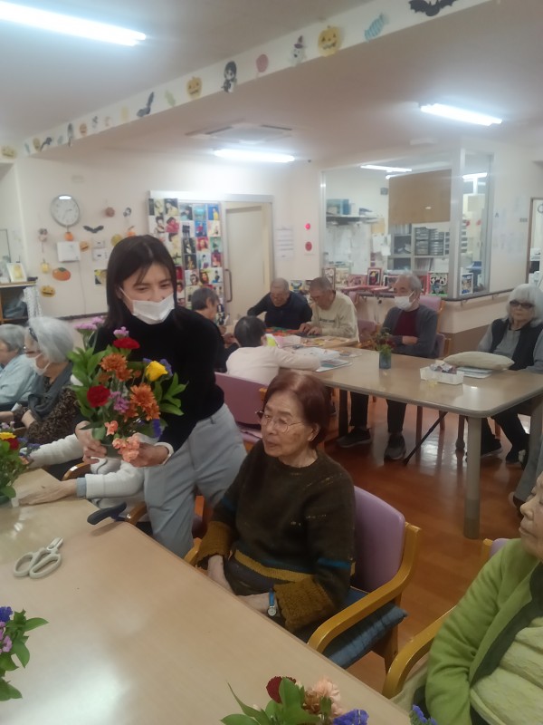 参加者様に順番に花を配っていきます。