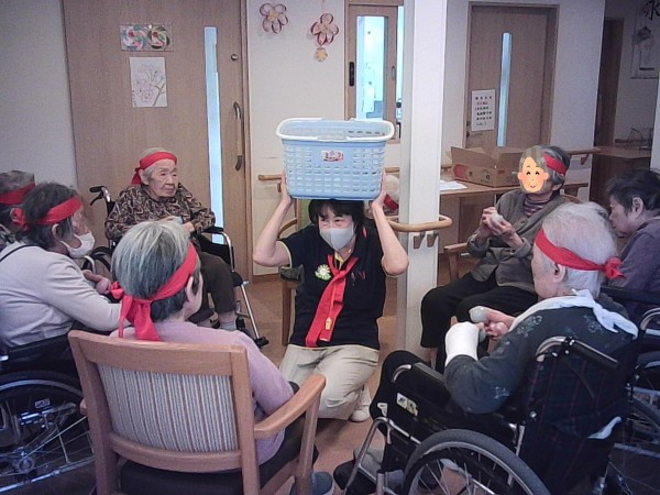 1ユニットは白組、2ユニットは紅組に分かれて、元気いっぱい楽しみました