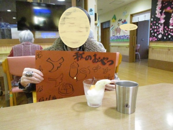 食欲の秋 本日のおやつ職員手作りパフェ皆さんの美味しい笑顔ご覧ください。