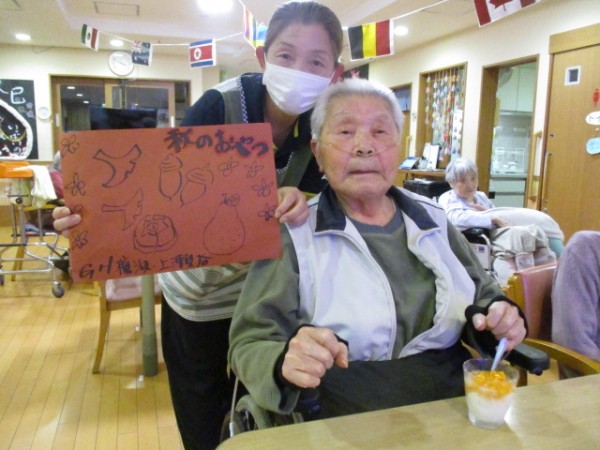 秋の味覚お腹いっぱい満喫)^o^( ごちそうさまでした。次回楽しみですね>^_^< ご覧いただきありがとうございました。ケアスタッフでしたm(__)m