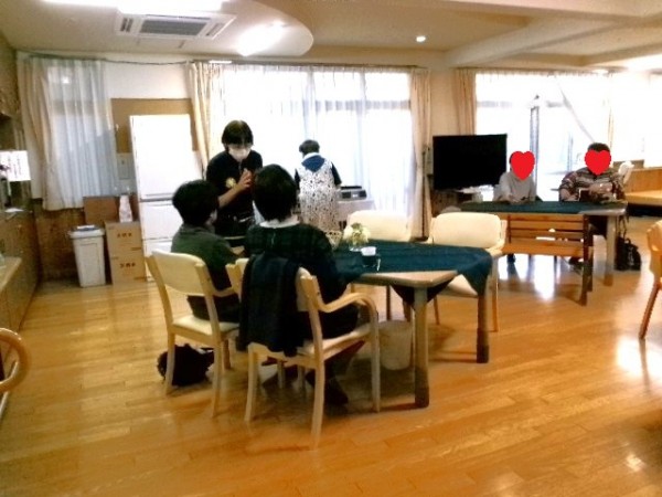 今回は、お茶を飲んだり談笑をしながら、マスクストラップ(メガネストラップのようなものです)を作りました♪