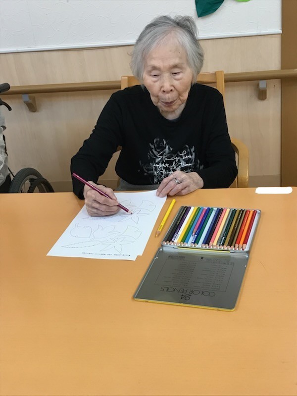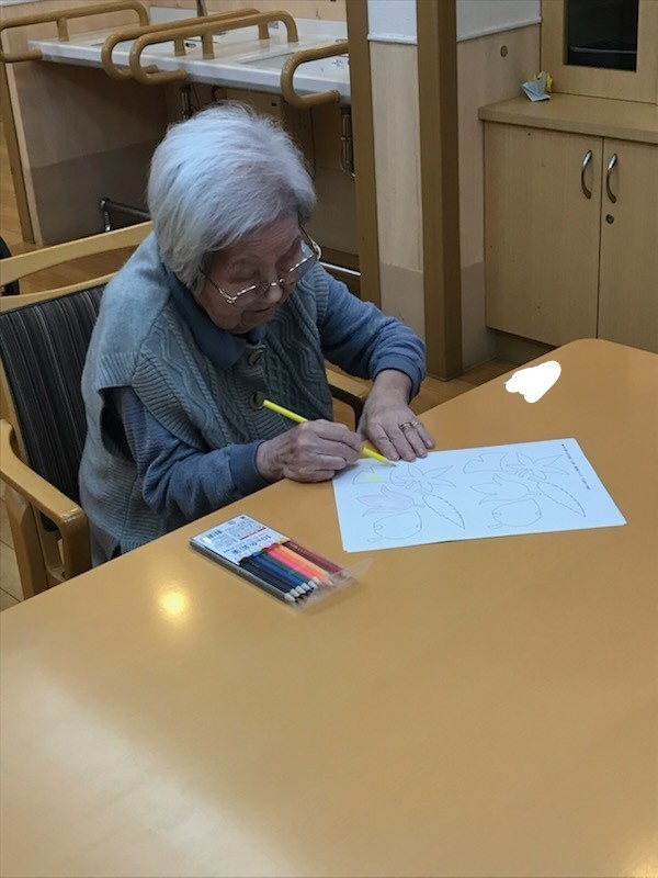 今回のテーマは紅葉ということでまずは、イチョウや落ち葉の型紙に塗り絵をしてもらいました(/・ω・)/
