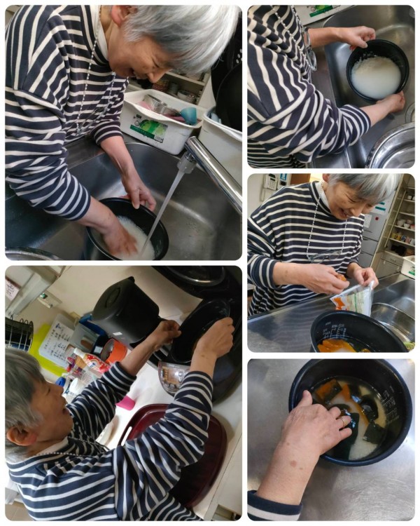 「久しぶりに研いだわ~。思い出すね、よくこうしてご飯作ったもんね。」