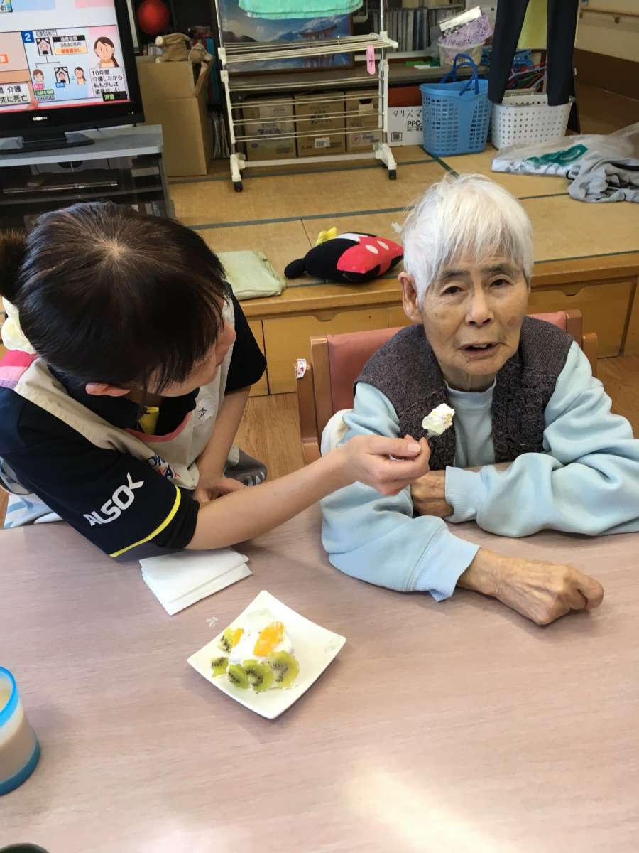 Yフロア長が大好きなFご利用者様、愛情たっぷりのバースデーケーキをおいしそうに召しあがられました(*^。^*)