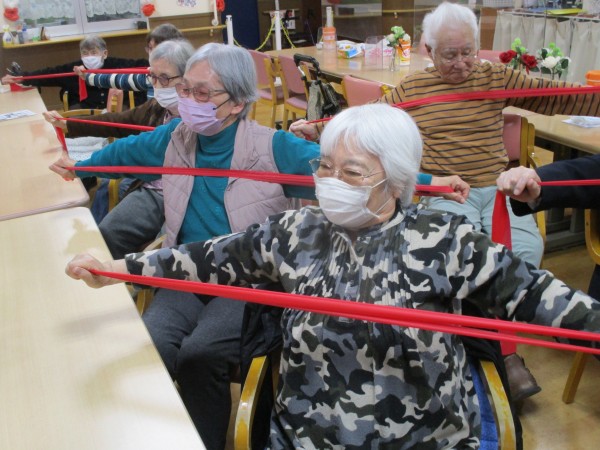 「身体が軽くなった気がする」「やっぱり動くって大事ね」など、前向きな声が多く聞かれました。定期的に取り組むことで、転倒予防にもつながります。一人ではなかなできない運動も皆で一緒に行う事で、無理なく続けられますね。これからも楽しく身体を動かしていきましょう!