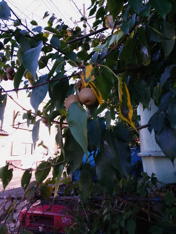 近くを散策してみると、、菊の花が咲いていたり、果物の梨がありました。