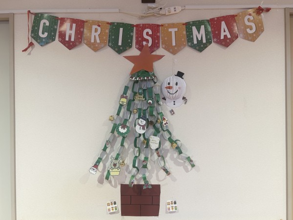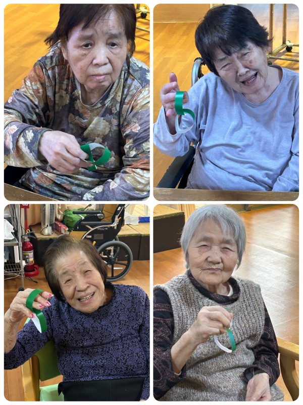 今回の工作レクは、輪っかをつないで作る手作りクリスマスツリーに挑戦です(*´▽`*)