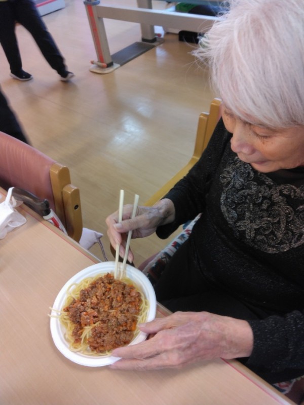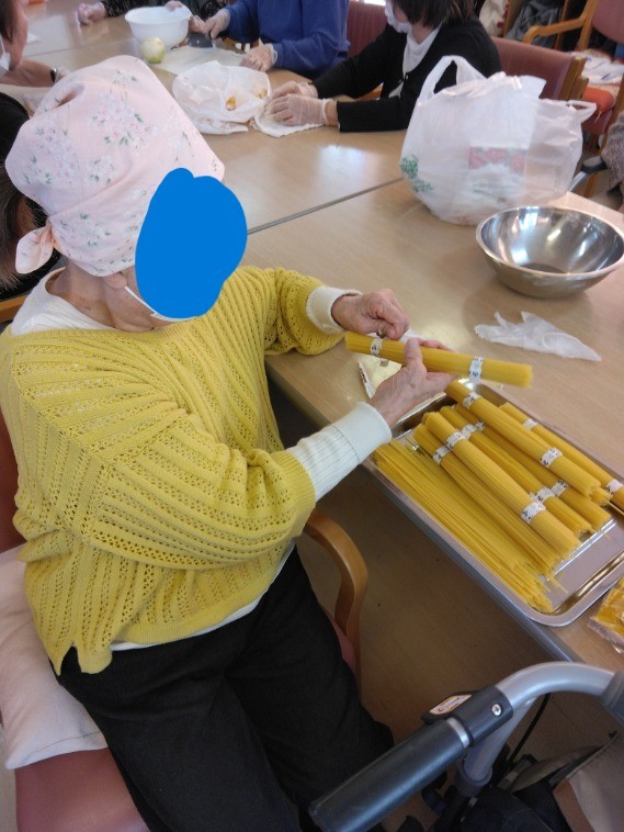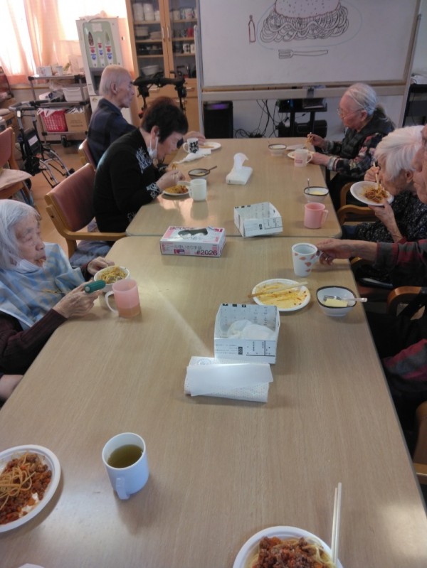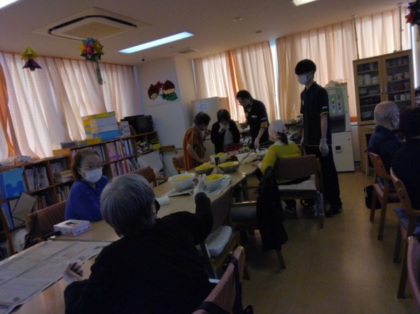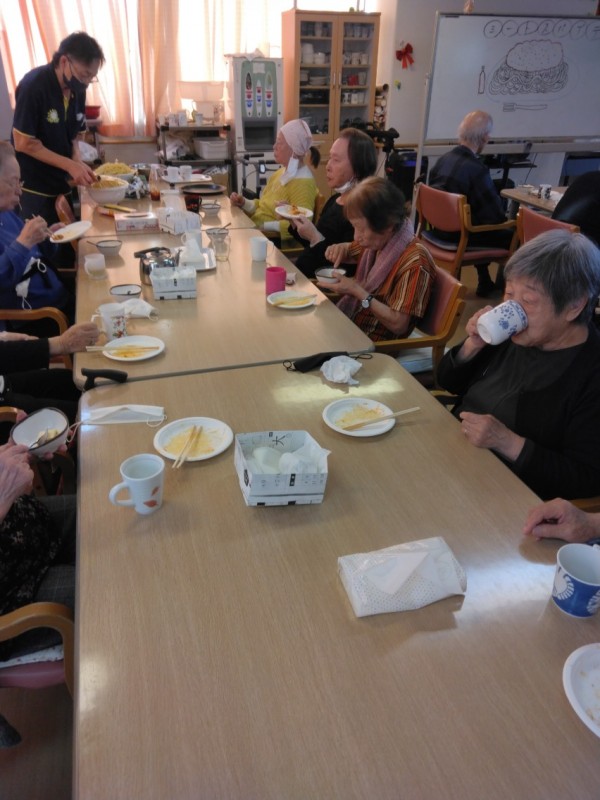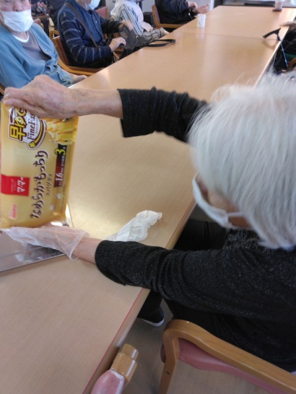 麺を袋から開けるところから盛り付けまで、職員が手伝いながらすべて利用者様に行っていただきました!