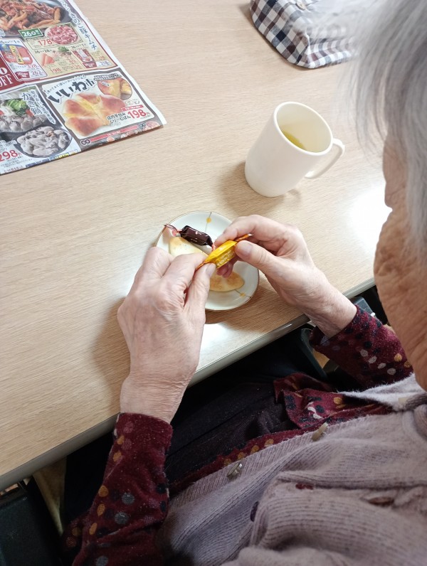 看護さんの素敵なこだわりで、チョコレートの包装紙をご自分の手で開けて欲しい!!