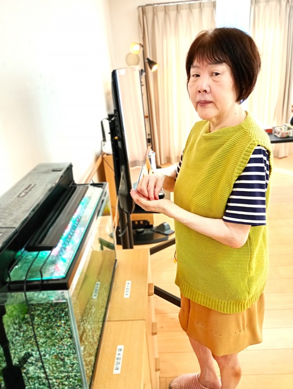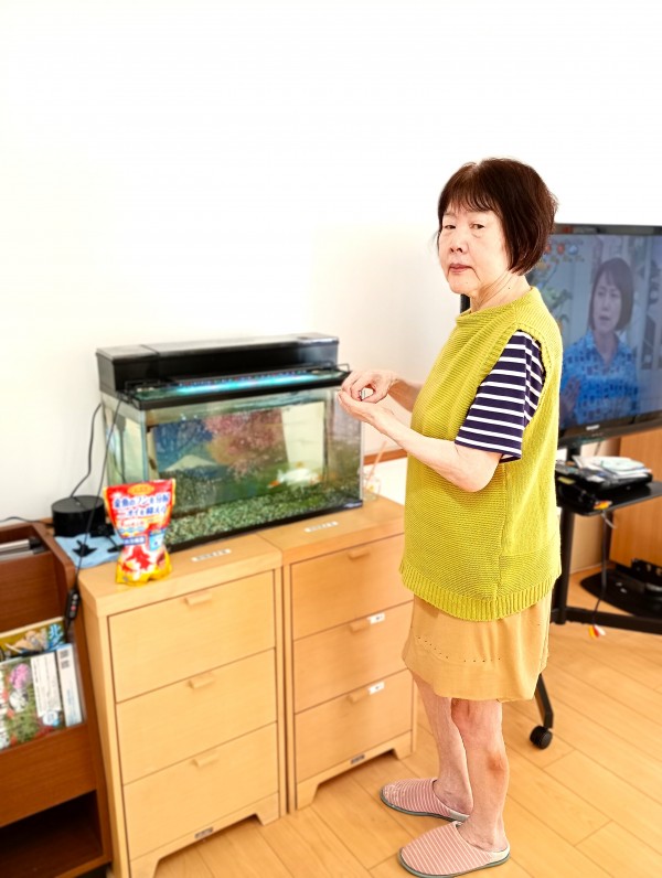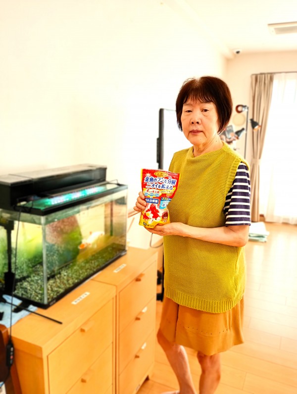 2日に1回と、ご利用者様のK様が金魚の餌をあげています\(^o^)/