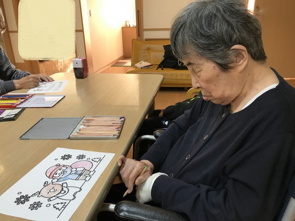 意外と真剣に黙々と塗って下さるので、塗り絵のバリエーションをもっと増やしていきたいと思います☆