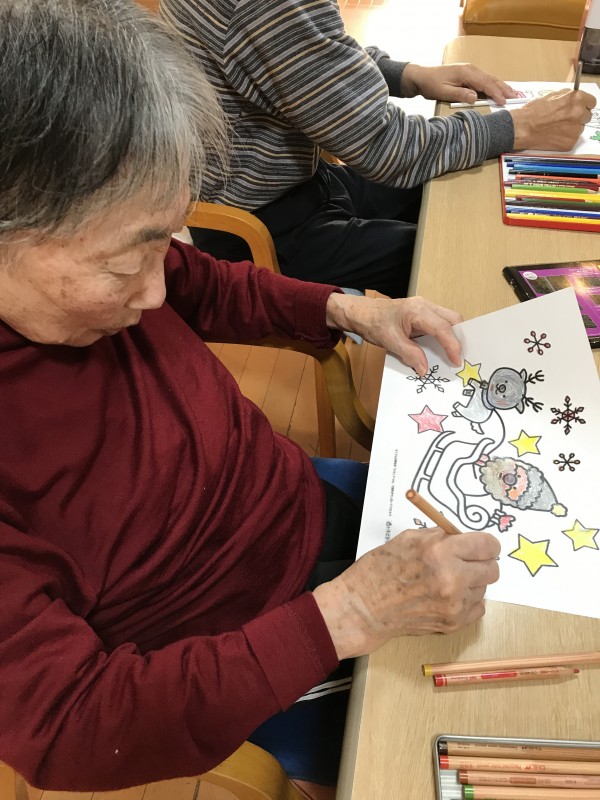 塗り絵をしている姿を見ていると、みなさんそれぞれ色の使い方などが違く、見ていてなるほど~と、思いました^^
