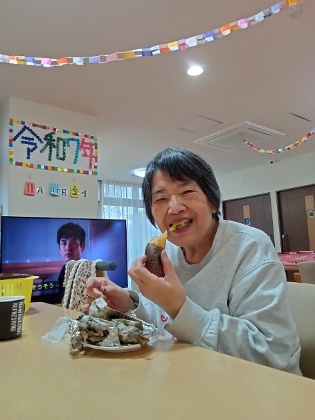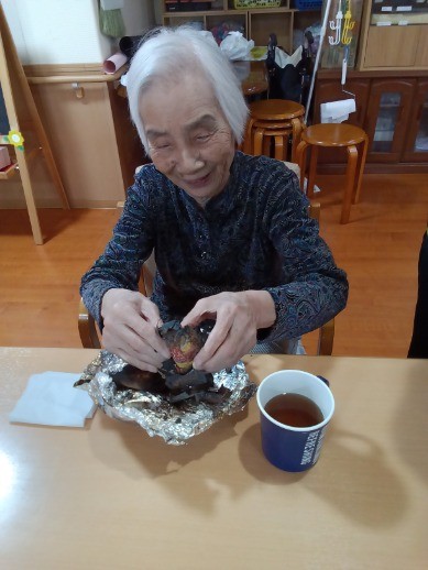 前回に引き続き、焼き芋の様子から今回は召し上がっている様子をお届けいたします♪
