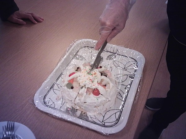フルーツケーキを皆様で美味しく召し上がりました(^_-)-☆