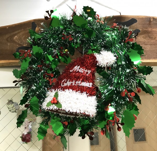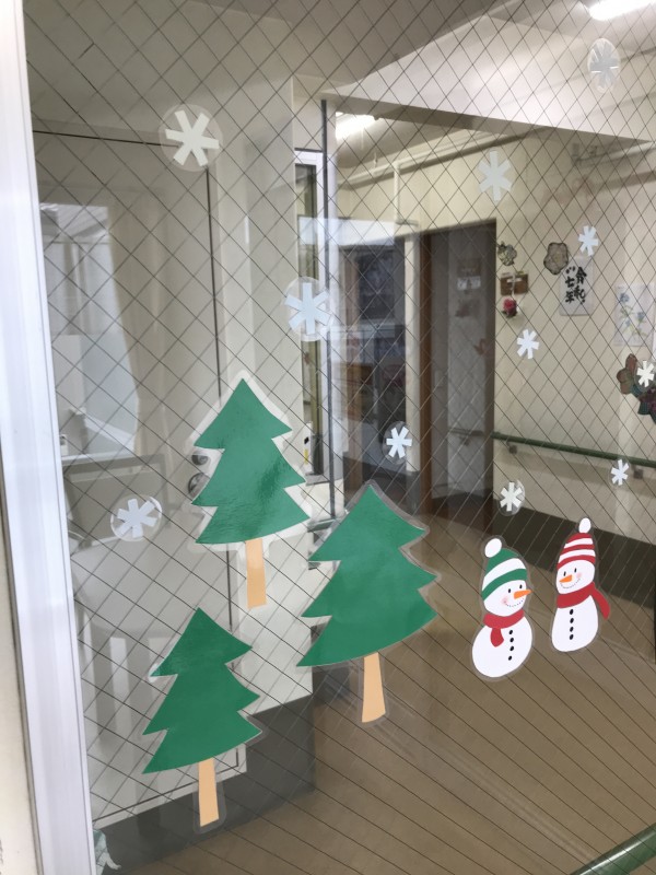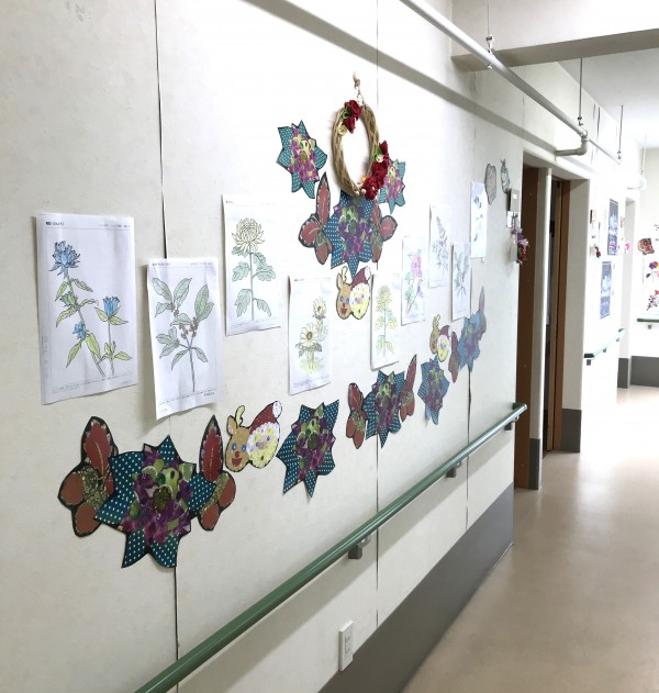 入居者様にも手伝って頂きながら、クリスマスの模様をホールや廊下に広げていきます!