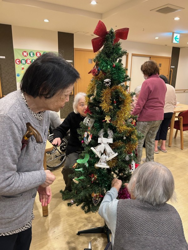 ツリーの飾り付けは、ご入居者の皆さまと一緒に行いました。