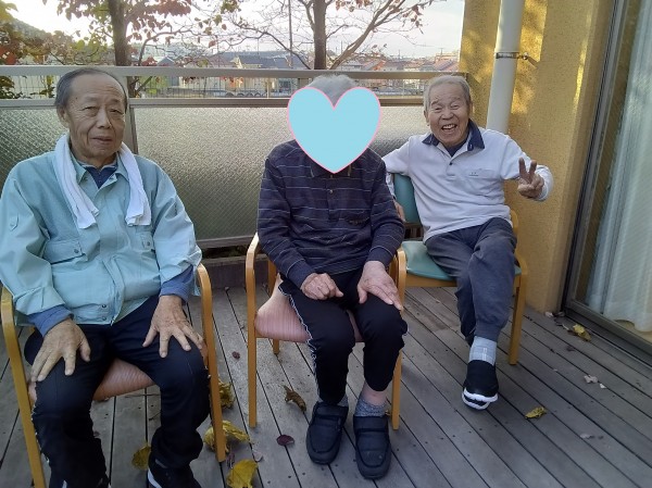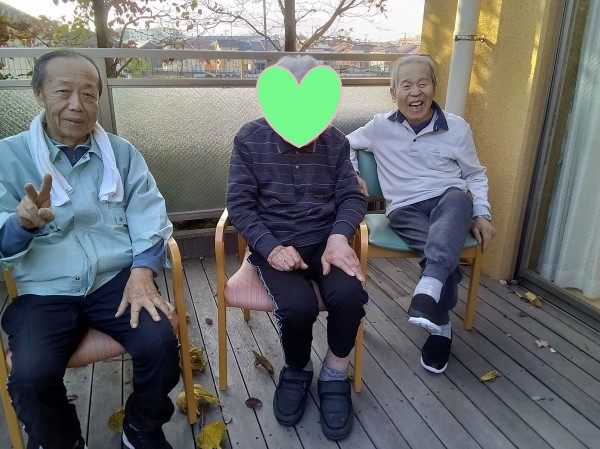 先日我がホームの男性メンバー3名様がウッドデッキに大集合し、外気浴を楽しみました♪