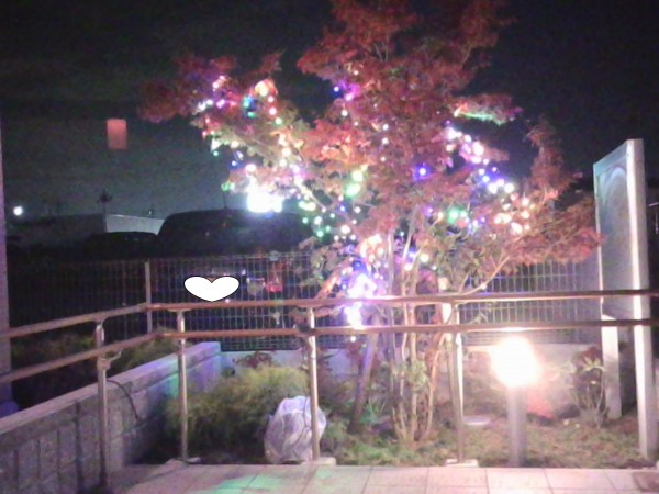 今年は、玄関横の木にクリスマス電球を取り付けてみました(^^)