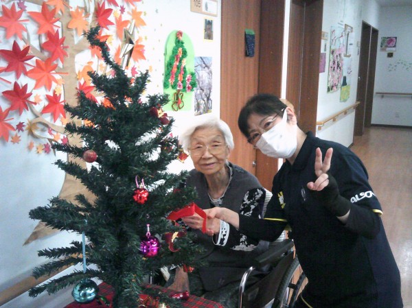 楽しそうにツリーに飾り付けを行いました。 綺麗に飾りました(*^_^*)