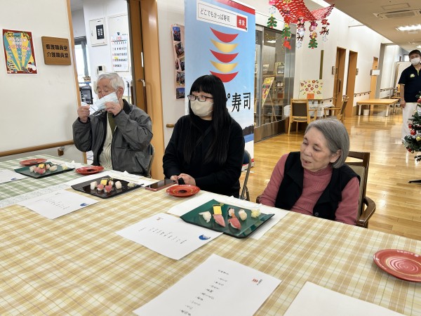 の声に迎えられて入居者様が続々とお寿司屋さん会場にやってきました。