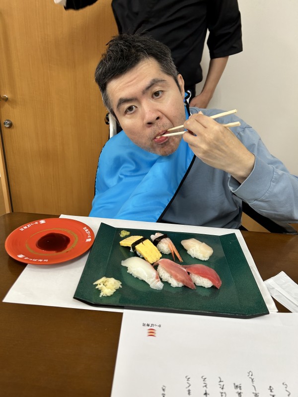 皆さんも今日はお寿司食べるって聞いてたけど、握りたてが食べられるなんてすごい!とテンション高めです!!
