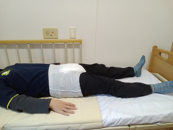 モデルに対して用意していたオムツが小さかったため、テープの位置がギリギリですが・・・(;^ω^)