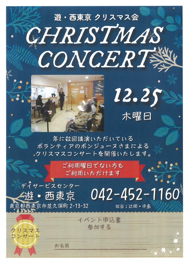 ・クリスマスコンサート♪シャンメリーで乾杯????ケーキもお出しします♪