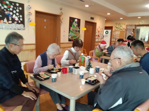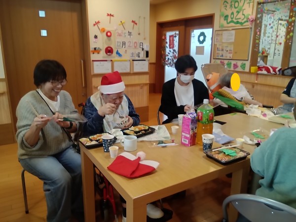 昼食はスタッフ特製の豪華クリスマスメニュー!デザートには手作りケーキ付き!
