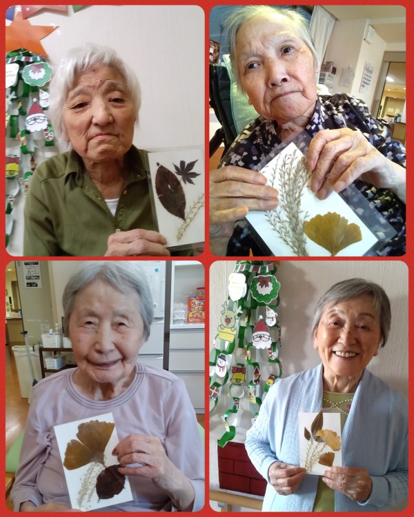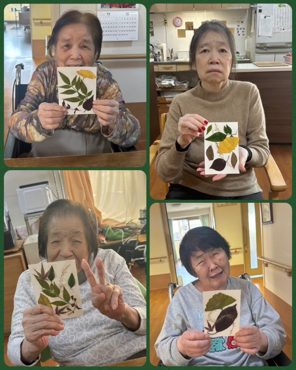 この日の工作レクは、季節の草花を使った押し花ハガキ制作を行いました