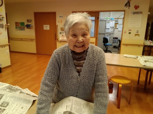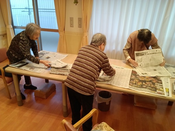 ご利用者様と一緒に新聞紙を1枚づつ剥がして4つ折りに畳みました。