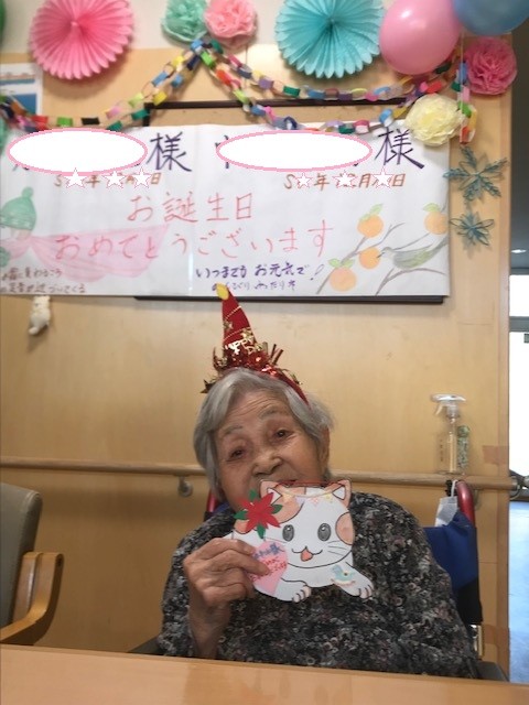 お誕生会の主役のお二人には帽子を被って頂きました。