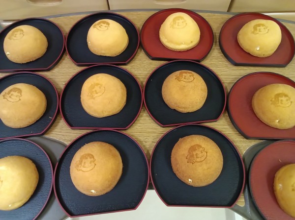 こちらが本日のおやつ、ペコちゃんのほっぺとカスタードプリンです。