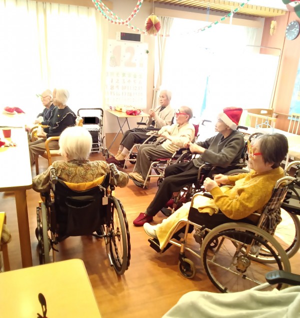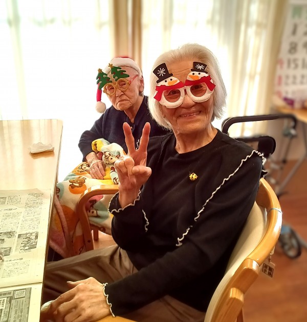 ご入居者様にはサンタクロースの帽子や かわいらしいクリスマスグッズを身に着けて